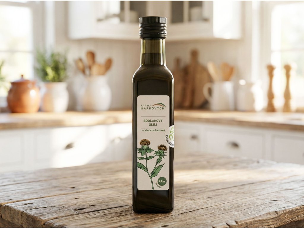 Bodlákový olej vyniká svou výraznou barvou a jemnou přírodní chutí i vůní, které jsou důsledkem šetrného lisování za studena. Díky tomuto způsobu zpracování si zachovává všechny cenné látky, včetně vitamínů A, D, E, K a minerálů, stejně jako esenciální mastné kyseliny, mezi které patří kyselina linolová (omega-6), olejová, stearová a arachinová.