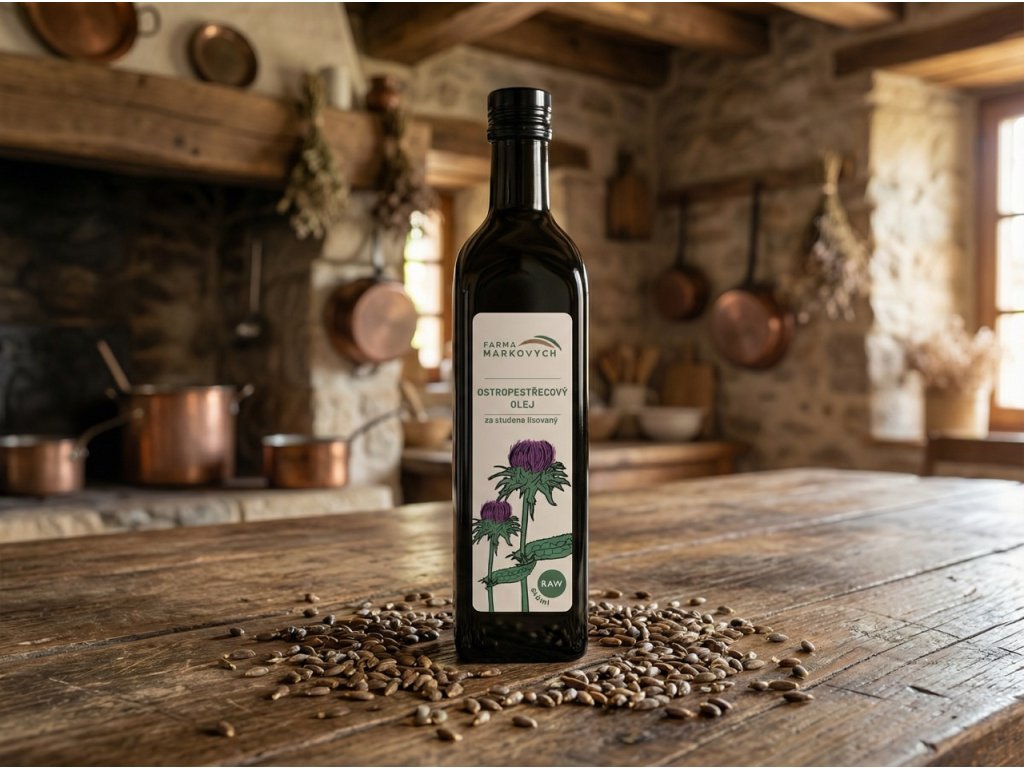 Ostropestřecový olej je vysoce ceněn pro jeho jedinečné prospěšné vlastnosti a jemnou, oříškovou chuť. Tento přírodní olej je získáván z pečlivě vybraných semen ostropestřece mariánského, která jsou na naší farmě vypěstována s respektem k přírodě. Lisování probíhá za studena při teplotách do 38 °C, což zaručuje, že všechny důležité složky, jako jsou nenasycené mastné kyseliny, vitamíny a minerály, zůstávají v oleji zachovány.